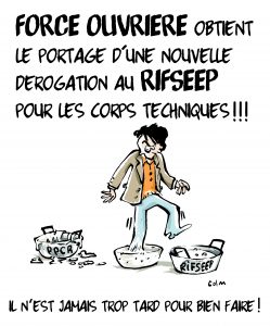 Il aura fallu un courrier commun des syndicats FO des corps techniques en 2015, une pression constante sur nos ministres en 2016, malgré l’échec d’un premier arbitrage, et enfin une dénonciation argumentée des règles de gestion du RIFSEEP mises en place par nos ministères, doublée de la pétition remise au nouveau ministre le 29 juin 2017 !!