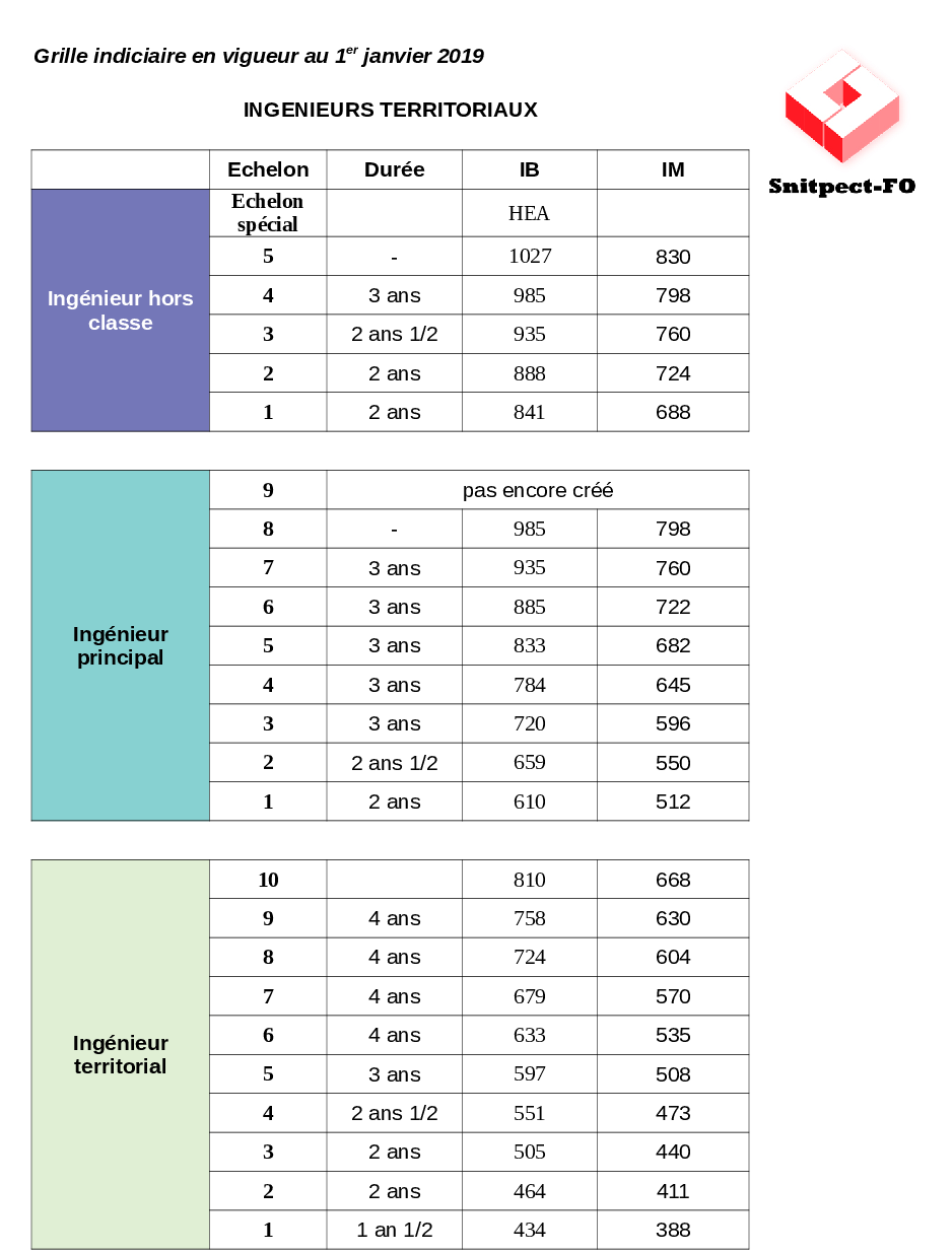 L’échelonnement indiciaire du corps des ingénieurs territoriaux est régi par le décret 2016-203. L’échelonnement indiciaire est le même que celui du corps des ITPE.