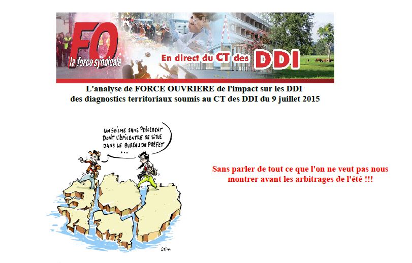 Retrouve ici le CR FO du CT des DDI du 9 juillet 2015 et la déclaration préalable FO.