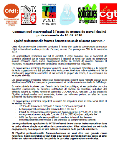 Egalité professionnelle au MTES-MCT : un an de réunions pour rien ?