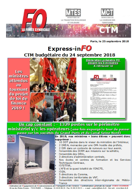 CTM budgétaire du 24 septembre 2018 27/09/2018 Retrouve ICI les éléments saillants issus du CTM budgétaire du 24 septembre 2018.