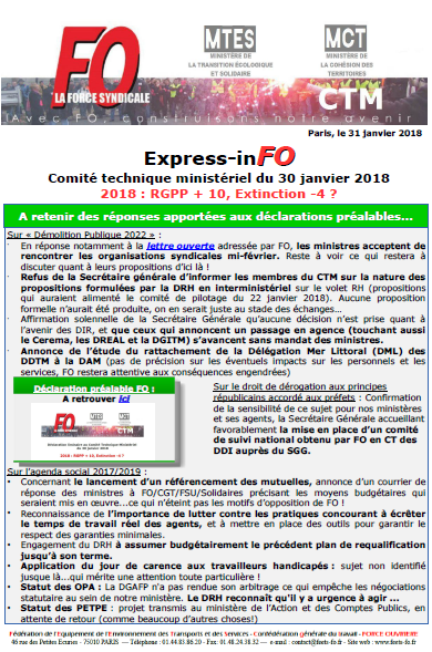 Employeurs > Ministère de l'Ecologie > CTM > CTM du 30 janvier 2018 : y a-t-il un (bon) pilote dans l’avion ?