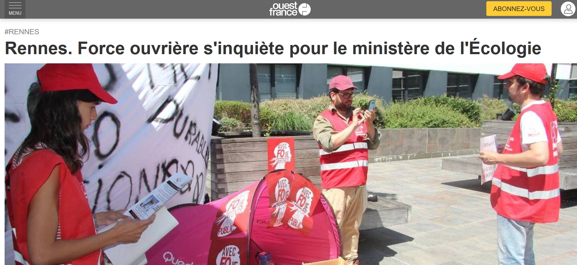 Qui sommes-nous? > Animation et action syndicales > actions locales > Région Bretagne > Une ZAD à Rennes pour faire sortir le ministère du « Zéro Ambition Durable »