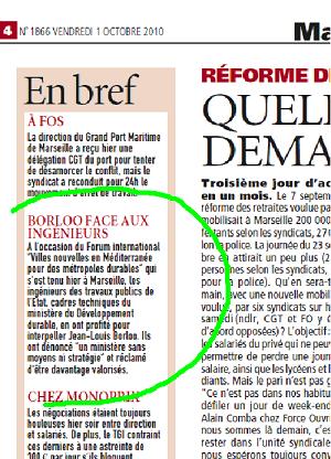– Article dans Marseille Plus du 1er octobre 2010 :