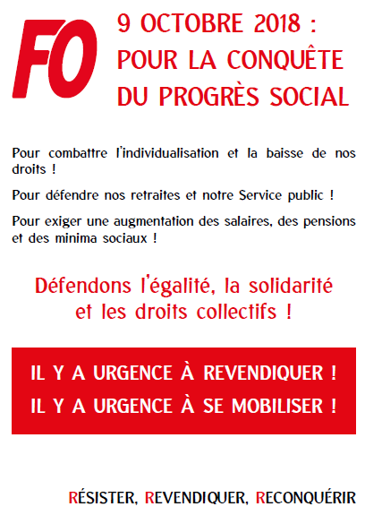 Qui sommes-nous? > Animation et action syndicales > Tous unis dans l'action ! > Le 9 octobre 2018, ensemble, pour la conquête du progrès social !