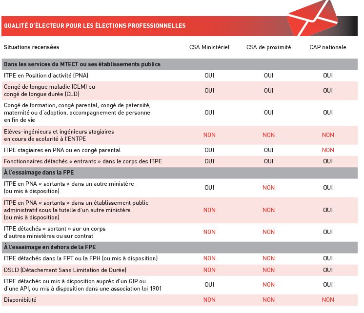 - Pour voter à la CAP, au CSA Ministériel et aux CSA locaux des services du MTECT (DREAL, Administration centrale, CETU, …) :