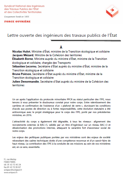 Les ITPE adressent une lettre ouverte à leurs Ministres