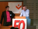 Christophe Pelsy et Jean-Marie Quemener présentent les travaux riches et denses du groupe de travail "fusion", qui a réuni des ingénieurs des 4 corps concernés et de profils diversifiés pendant toute l'année 2011. <emb2983